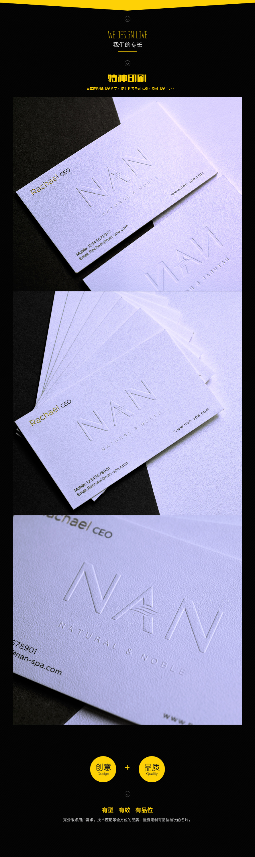 产品编号:No.223351.046.110-1.220-2 纸张名称:335gsm采石纸/蛋壳纸/超白 规格尺寸:90*54mm(可选90*50mm,89*51mm,85*54mm,非标可定制) 起订数量:同款同名200张起订 选配工艺:建议电化铝烫印、圆角、激凸、水晶凸字、异型模切等 制作工期:定稿后3-5个工作日,特殊情况除外! 备注说明:特殊定制,请致电本司热线+86-755-29989970或咨询客服 微信:1353423609