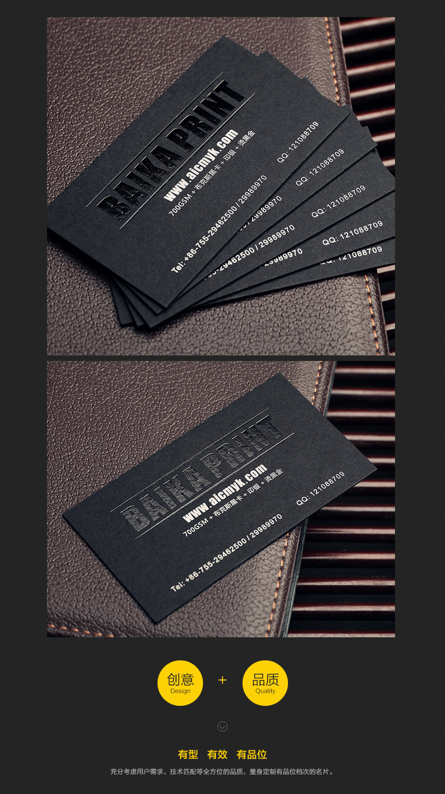 一张设计精美的名片可以玩转品牌。你想要打动什么类型的客户?你希望客户从名片中获得什么信息?名片的颜色、图案纹理、文字排版都应与想表达的业务内容一致,并且超越其他竞争对手~ 名片是一个人在社会生活中的一种身份象征,很多场合都会需要用它来进行“自我介绍”,所以这个时候名片品质的好坏直接与个人形象对等起来,名片是什么你就是什么。所以名片设计意义重大。