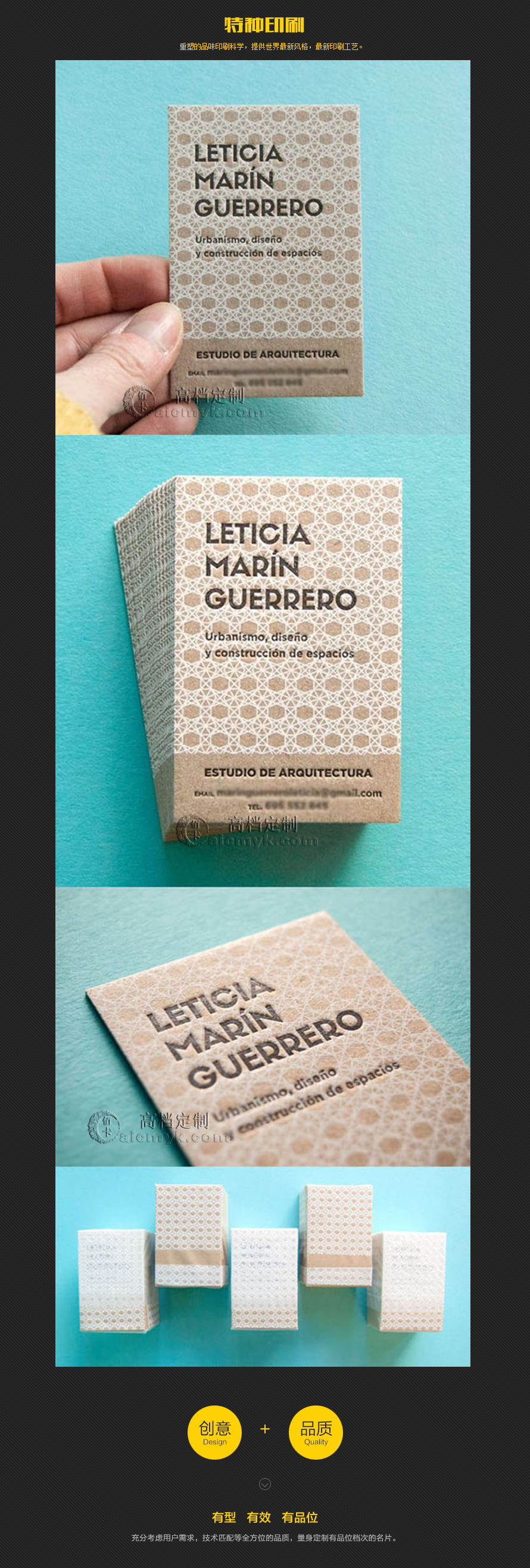 人们对PVC的定义范畴大概都是耐撕、防水等一些,很少人会把它与高端联系在一起,我们将PVC用于名片制作搭配高档烫金工艺使得这款名片不仅实用性超高颜值更是绝对抗打,这款PVC具有独特拉丝质感,大大提升了触感,以黑色作为底色金色点睛再配以烫透明低调且极具内涵。