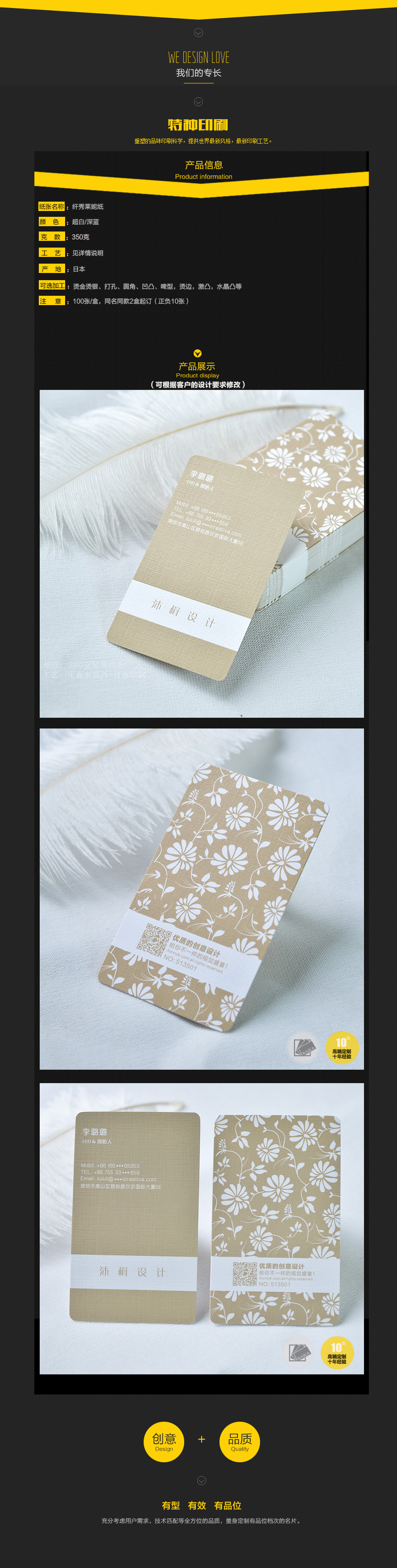 竖向格式:干净优雅的外观设计,在近些年来越来越流行。同样适用于任何印刷。 自定义切割:独特的裁剪设计彰显强烈的品牌风格 ,定制的切割造型体现品牌的专业性 。