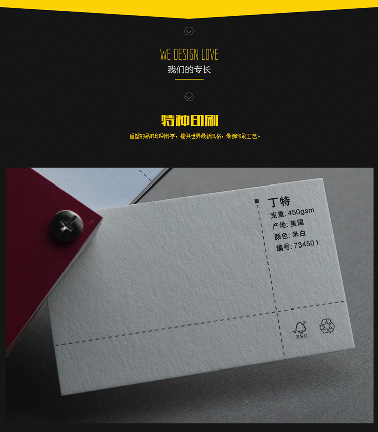 印象中大多数名片以文字为主,而我们要做的是发掘名片的与众不同,做到文字与图片相结合同时保持品质例如图像的清晰度、 文字与图片的排列,而我们这款名片不仅兼具以上两个特点,更是采用了高端棉纸,以文字做有色压凹工艺把名片的美感以及质感 大大的提升了,我们用实力说明美观与实用性二者可以兼得。